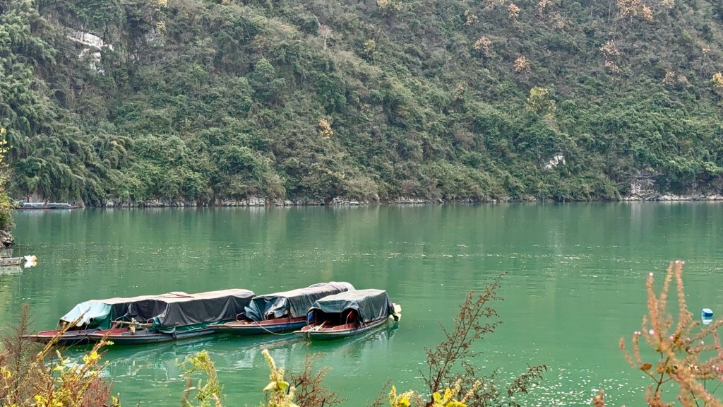 La carretera terminó en una grieta enorme. Tuvimos que bajar a pie. En la orilla, un hombre solitario esperaba su barca. El agua era de un verde hipnótico y los barcos de madera parecían suspendidos en otro tiempo. Andrea le preguntó si podía darnos una vuelta, pero dijo que aún no había llegado su embarcación.