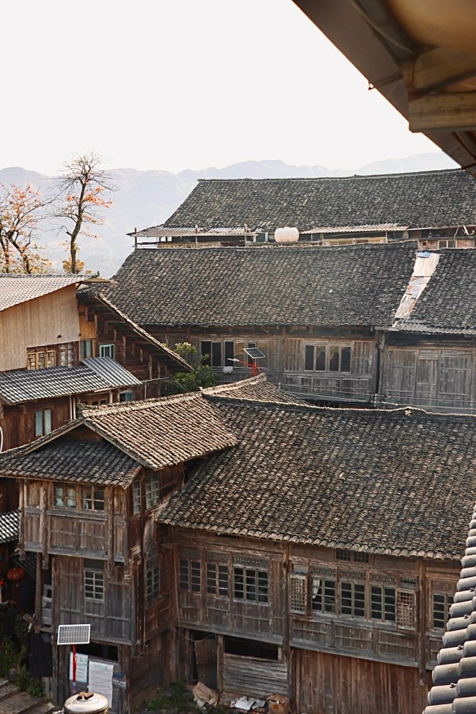 Su historia también tiene ese mismo tono sencillo. Tiantou no nació de una gran historia, sino de algo mucho más sencillo: familias que tuvieron que adaptarse a una montaña demasiado empinada. Las terrazas son el resultado de generaciones moldeando la tierra para poder vivir de ella. Y las casas, todas de madera, se levantan como si hubieran crecido del mismo suelo: apoyadas sobre pilotes, resistentes a la humedad, alineadas siguiendo la lógica del terreno. La arquitectura es impresionante precisamente por su naturalidad. Nada sobra. Nada intenta llamar la atención. Cada casa parece estar colocada donde tenía que estar, mirando a las terrazas o al valle, como si formara parte del paisaje desde siempre.
